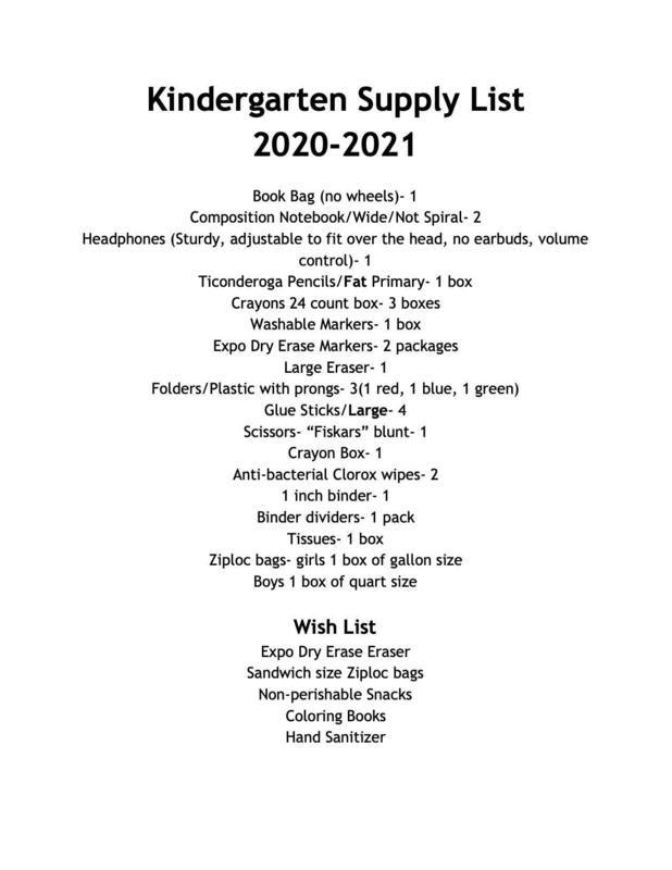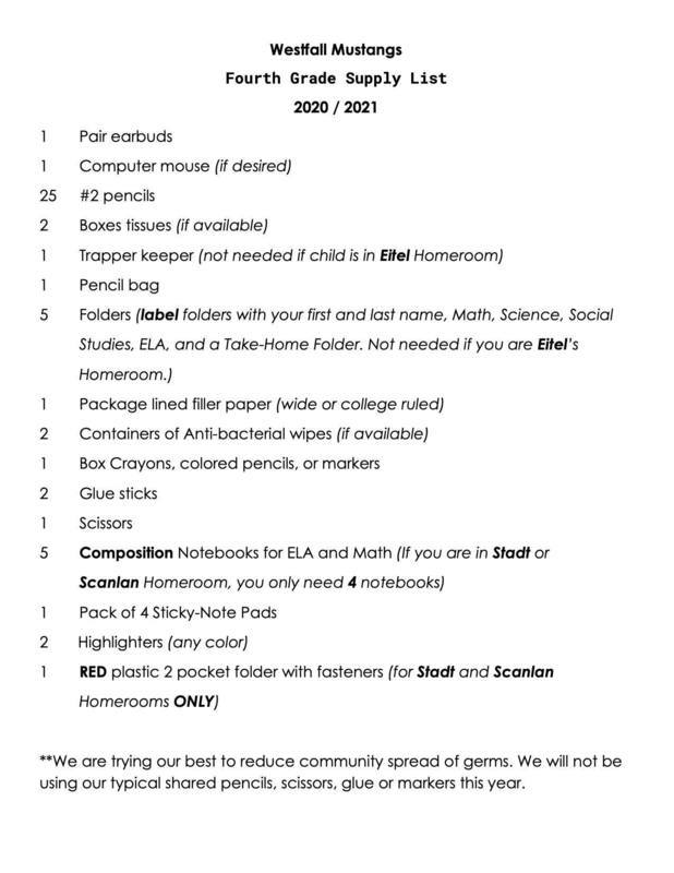 WES School Supply Lists